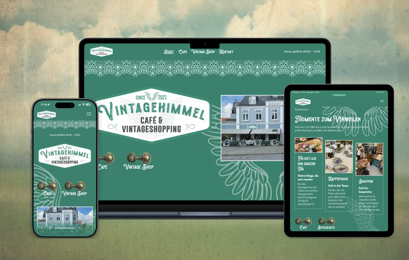 Die größte Herausforderung bestand darin, die besondere Stimmung von Vintagehimmel in eine digitale Form zu übersetzen. Das Zusammenspiel aus Café, Genuss und Vintage-Elementen sollte nicht nur sichtbar, sondern auch fühlbar werden. Gleichzeitig galt es, die Inhalte klar zu strukturieren und Besuchern schnell Orientierung zu bieten, ohne den emotionalen Charakter der Marke zu verlieren.